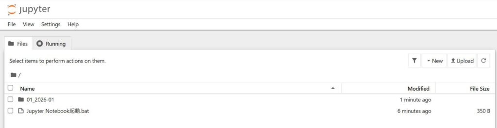 作成したバッチをダブルクリックすれば、自動で仮想環境の有効化とJupyter Notebookの起動ができるのじゃ!